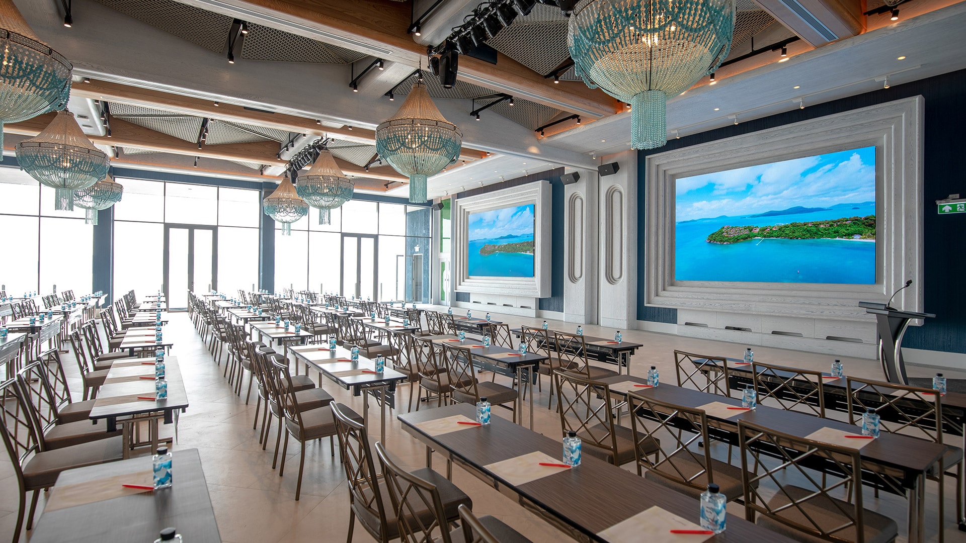 Upon stepping in, a lobby and reception area greet you before stepping into a hall, a pre-function room designed for mixing and mingling, and finally, a grand convention hall with space for 400 guests in a cocktail-style environment and 180 guests in a round table setting. The space has been fitted out with top-of-the-line light and sound equipment that can be finely tuned to suit any mood. Finish off your event with a social affair at TU on the roof, and tuck in for the night in any one of the building’s 24 Pool Suites. Additional accommodations are available at Sri panwa. Parking is located onsite, and catering to Sri panwa’s refined taste and standard is available upon request alongside one of the many restaurants located on the property.